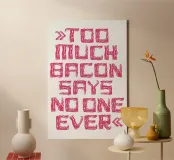 Se sei un amante del bacon e dell'umorismo, il canvas "Bacon" di Herzette è perfetto per te! Questo design divertente e stravagante illumina qualsiasi ambiente, dalla cucina al soggiorno. La scritta audace e il look unico la rendono un'aggiunta irresistibile per gli appassionati di cibo e per chi ama decorare con stile. Ideale anche come regalo originale per amici o familiari che apprezzano un tocco di ironia nella loro casa! Rendi il tuo spazio più accogliente e divertente con una semplice opera d'arte che parla da sé!