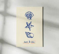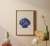 Illustrazione di una conchiglia blu su sfondo beige. Disegno originale creato su Procreate.