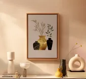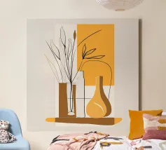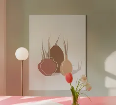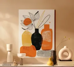Il design minimalista ma vibrante evoca una sensazione di calma e di connessione con la natura, rendendola perfetta per aggiungere un tocco di calore ed eleganza a qualsiasi spazio. Utilizzata come decorazione murale, come stampa per la casa o come parte di una collezione digitale, quest'opera d'arte invita gli spettatori ad abbracciare la bellezza della semplicità e il fascino senza tempo delle forme naturali.