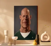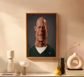 Caricatura umoristica del noto attore americano e hollywoodiano, nonché eroe del cinema, Bruce Willis. Una delle caricature realizzate per la serie Celebrity Sunday, in cui un personaggio famoso viene ritratto in un giorno. L'idea è di mostrarli come in una fototessera per avere coerenza.