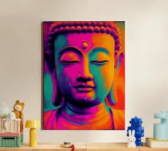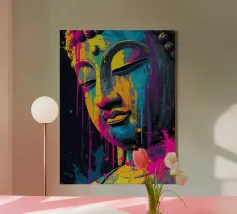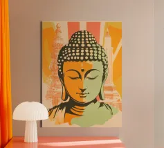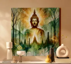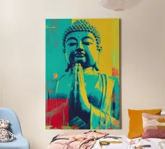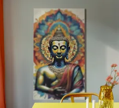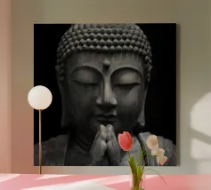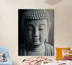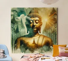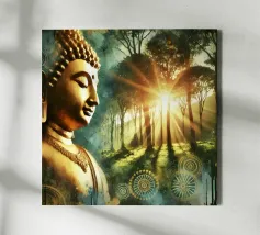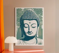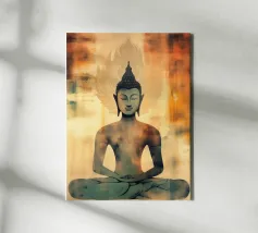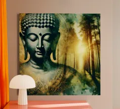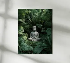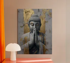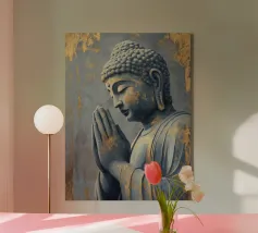 Questo sublime poster mostra una statua di Buddha in posizione di preghiera, circondata da delicati viticci dorati. La rappresentazione fotorealistica con toni caldi dell'oro e freddi dell'argento ricorda l'arte antica dei templi, combinata con una visualizzazione 3D contemporanea. Gli effetti delle intemperie e la morbida patina conferiscono all'opera una profondità spirituale. Perfetto per gli ambienti che devono emanare calma e consapevolezza. Una dichiarazione forte per chiunque apprezzi la saggezza orientale e l'atmosfera meditativa: una spiritualità senza tempo per la casa moderna.
