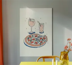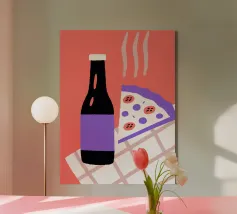 L'abbinamento perfetto per iniziare la giornata o per godersi un momento di relax! Questo disegno raffigura una fragrante tazza di caffè e un delizioso trancio di pizza, una combinazione che molti amano.