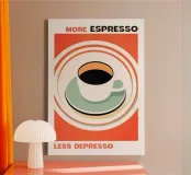 coffee espresso cup saucer text ring-pattern beverage ceramic hot-drink mug caffeine drinkware circular-design breakfast-drink text-message morning-routine quote contrast orange-background cream-rim