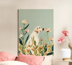 cane fiori prato erba animale domestico natura all'aperto felice primavera verde floreale giardino carino animale fioritura fiori selvatici pianta foglie pacifico soffice