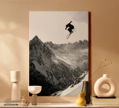 Provate il brivido dell'avventura alpina con questo splendido poster "Chamonix", che mostra le vette mozzafiato di una delle destinazioni sciistiche più iconiche del mondo. L'audace disegno diagonale mette in evidenza uno sciatore a mezz'aria, che si libra sullo sfondo drammatico di aspre montagne innevate e nuvole tempestose. Questa composizione monocromatica evoca sia la maestosità che la sfida delle Alpi. Perfetto per gli appassionati di sci, gli avventurieri o gli amanti dei paesaggi montani, questo poster porta lo spirito di Chamonix nel vostro spazio. Ideale per la casa, l'ufficio o la baita, è un omaggio alla bellezza e alla bellezza delle Alpi.