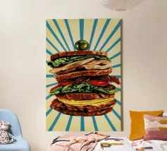 Porta un po' di stile nella tua casa con la stampa su tela "Cheeseburger" di Kelly Gilleran! Perfetta per gli amanti del cibo e per chi cerca un tocco vintage. Questa opera unica non è solo un'aggiunta divertente, ma trasforma i tuoi spazi. Ideale per la cucina, il soggiorno, o come regalo originale. Aggiungi un po' di colore e personalità alle pareti! Facile da appendere e durevole, questa stampa è un must per ogni amante della gastronomia.