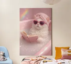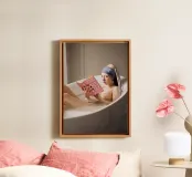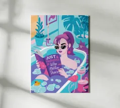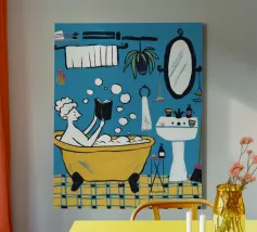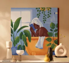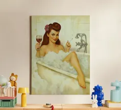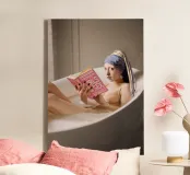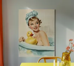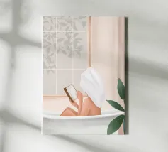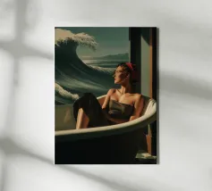 "Chillin time" è un pezzo che celebra quei momenti di tranquillità e divertimento nella vita di tutti i giorni. Ispirata all'iconico dipinto "La ragazza con l'orecchino di perla", questa elegante parodia aggiunge un tocco contemporaneo che sicuramente strapperà un sorriso, soprattutto alle donne. È un omaggio a quei momenti di relax e disconnessione, in cui non ci sono preoccupazioni o distrazioni maschili. Questo collage digitale è perfetto per decorare con stile qualsiasi bagno, aggiungendo un tocco di umorismo e raffinatezza al vostro spazio personale".