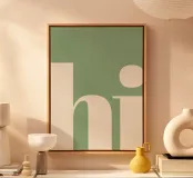 Salutate con stile! Questo poster tipografico minimalista in morbido verde salvia porta una fresca leggerezza e una moderna eleganza nella vostra casa. In corridoio, in soggiorno o nello spazio di lavoro, il design semplice con scritte chiare crea un'atmosfera amichevole e invitante e si adatta perfettamente a un'ampia gamma di stili di arredamento.