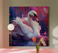 Questo dipinto a olio non raffigura semplicemente un cigno, ma cattura piuttosto un senso di eleganza e purezza. Il cigno scivola con grazia sul lago immobile, come una principessa di una fiaba. Le sfumature dorate dell'alba bagnano la superficie dell'acqua, creando un'atmosfera romantica e poetica. Il dipinto evoca un senso di serenità, di morbidezza e di sogno nell'osservare la bellezza della natura. Le sue piume bianche come la neve contrastano meravigliosamente con il blu del lago, componendo un'armoniosa sinfonia di colori ed emozioni.