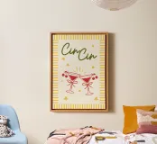 Aggiungi un tocco festivo al tuo spazio con questo elegante canvas "Cin Cin". Perfetto per bar, cucine o sale da pranzo, questa opera d'arte vivace evoca momenti di convivialità e celebrazione. Realizzato con materiali di alta qualità, è una decorazione ideale per ogni amante dei cocktail.