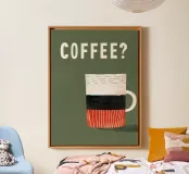 Questo poster minimalista trasforma una semplice domanda in un'audace dichiarazione visiva. Utilizzando una forte tipografia, forme geometriche piatte e una tavolozza di colori sobri, come il verde oliva, il crema, il nero e il rosso caldo, l'opera d'arte cattura il tranquillo umorismo e il rituale della cultura del caffè. L'illustrazione della tazza testurizzata aggiunge calore e tattilità, bilanciando il layout pulito con una sensazione di artigianalità. La composizione è giocosa ma sofisticata, ideale per cucine moderne, caffè, studi o interni di ispirazione scandinava che celebrano la semplicità, la routine e i piaceri quotidiani.