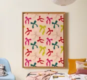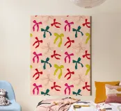 Un motivo giocoso di fiocchi colorati in rosso, rosa, verde acqua, verde lime e pesca, sparsi su un morbido sfondo color pesca con accenti di stelle bianche. Questo disegno allegro e festoso dona un fascino stravagante, perfetto per aggiungere un tocco femminile e gioioso al vostro spazio. Ideale per confezioni regalo, decorazioni ispirate alla moda o per chiunque ami un motivo audace ma delicato. Creato da showmemars