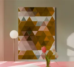 Il motivo a triangoli colorati infonde un'aura vibrante in qualsiasi spazio grazie al suo design distintivo. Il vivace motivo è una miscela eclettica di toni tenui che incarnano sia il fascino estetico che la morbidezza visiva, stuzzicando delicatamente l'occhio ma senza sopraffare. Il motivo a triangoli multicolore si allontana dalla banalità, presentando uno stile contemporaneo e chic, perfetto per chi vuole dare un tocco di novità al proprio arredamento. I triangoli sono disposti meticolosamente in una forma quadrata, creando una gerarchia visiva stimolante e confortante.