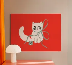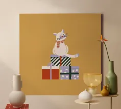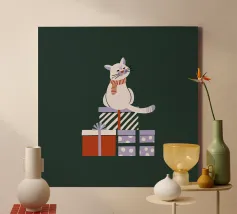Stai cercando un modo originale per augurare un Natale speciale? Questo quadro in canvas con un adorabile gatto rosa sopra un regalo è perfetto! Realizzato con colori vivaci e uno stile illustrato unico, è l'ideale per decorare ogni stanza, dall'ufficio alla camera dei bambini. Perfetto per gli amanti dei gatti e dei regali, questo pezzo d'arte porterà un sorriso a chiunque lo guardi. Regalalo come idea regalo creativa o aggiungilo alla tua collezione.