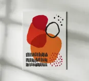 Questo potente pezzo astratto presenta una composizione di forme audaci e primordiali nei colori rosso, beige e nero. Dettagli strutturati e graffiati e una forte forma circolare conferiscono all'opera un'atmosfera grezza, antica e quasi tribale, bilanciata da una sensibilità di design moderno.