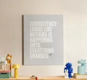 Scopri il poster “CONSISTENCY” di BAWA: una stampa motivazionale perfetta per ispirarti ogni giorno. Con il messaggio potente che "la coerenza sembra non portare a nulla, fino a quando tutto cambia", questo design è ideale per chi cerca stimoli e riflessioni profonde. Realizzato con un'estetica minimalista, è perfetto per la tua casa, il tuo ufficio o come regalo speciale. Adatto per ambienti moderni e creativi, questo canvas porterà un tocco di originalità ovunque lo posizioni.