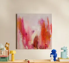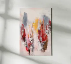Un'audace esplorazione della struttura attraverso una vivida astrazione. Dominata da strati di cremisi, arancione e corallo, questa composizione dinamica intreccia forme geometriche con pennellate espressive, creando un'energia ritmica che sembra architettonica ma emotiva. Il gioco di angoli acuti e sfumature morbide evoca movimento, calore e vitalità: un pezzo forte per qualsiasi spazio moderno.