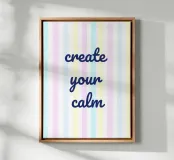 "Crea la tua calma" centrata su uno sfondo a strisce verticali in morbidi colori pastello. Semplice design clipart senza ombre, minimalista e chiaro - ideale per vibrazioni calme ed equilibrate con un look moderno.