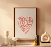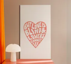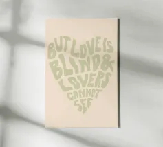 Una stampa d'arte elegante per tutti i romantici! Il design minimalista di questo cuore con la citazione poetica "But love is blind & lovers cannot see" combina un'estetica semplice con un significato profondo. La giocosa tipografia disegnata a mano aggiunge un tocco artistico all'immagine e la rende un pezzo senza tempo. Perfetto per salotti moderni, camere da letto o come regalo per persone speciali. La combinazione di colori caldi, in un tenue rosé, crea un'atmosfera delicata e armoniosa ed è ideale per gli stili d'interni scandinavi o minimalisti.