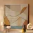 Quest'opera d'arte raffigura una composizione astratta con linee e forme curve, resa con colori tenui come il beige, il marrone e il blu. La composizione è aggraziata e fluida, evocando un senso di movimento ed eleganza.