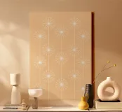 Questa opera d'arte digitale con motivo a dente di leone in giallo è un pezzo di grande impatto visivo. L'opera presenta un motivo ripetuto di denti di leone reso in stile digitale. L'uso del blu crea un senso di armonia ed equilibrio in tutta l'opera.