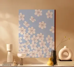 This digital dandelion pattern artwork in blue is a visually striking piece. The artwork features a repeating pattern of dandelions rendered in a digital style. The use of blue creates a sense of harmony and balance throughout the artwork.