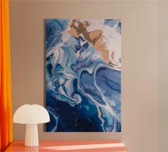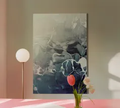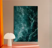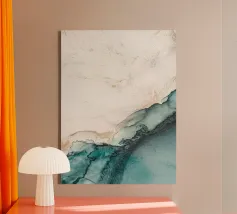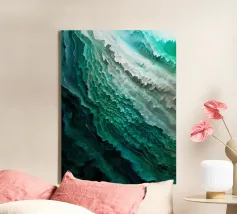 Questa opera d'arte è una coinvolgente composizione astratta ispirata al movimento e alla profondità dell'acqua. I toni stratificati di verde acqua, smeraldo e blu profondo scorrono sulla superficie, creando un senso di movimento costante e di energia nascosta. Le pennellate strutturate e le transizioni fluide suggeriscono l'erosione, la pressione e il tempo sospeso sotto la superficie. Gli accenti di luce emergono come riflessi o fratture, guidando l'occhio attraverso la composizione. L'opera evoca profondità, trasformazione e il potere silenzioso di forze invisibili.
