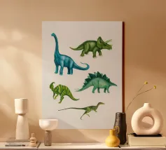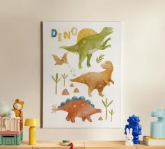Porta un tocco giocoso nella tua casa con questa bellissima stampa su tela "Dinos"! Realizzata da Sabrina Ziegenhorn, presenta dinosauri colorati che catturano l'immaginazione di grandi e piccini. Perfetta per decorare la cameretta dei bambini o come regalo unico per chi ama il mondo dei dinosauri. Dai vita alle pareti con il suo stile giocoso e amichevole! Facile da appendere e adatta per qualsiasi ambiente, questa tela è un must per chi cerca un design accattivante e originale.