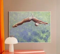 Stai cercando un tocco di eleganza e dinamismo per la tua casa? “Dive” di Laura Graves è la scelta perfetta! Questo canvas unico cattura il momento di una tuffatrice in azione, immersa in un'atmosfera magica sotto la luna. Perfetto per chi ama nuotare, l'arte sportiva o semplicemente un design moderno. Con un mix di colori vivaci e forme fluide, porterà un’energia rinfrescante al tuo spazio. Ideale per living, camere da letto o anche in un ambiente di lavoro creativo. Non solo un'opera d’arte, ma un vero pezzo conversazionale che inviterà alla contemplazione e all'ispirazione. Aggiungi un'eleganza senza tempo e fai una dichiarazione con il tuo arredamento!