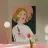 Un ritratto lunatico ed evocativo cattura una donna bionda con una delicata camicetta bianca, dall'espressione pensierosa e forse un po' malinconica. Lo sfondo scuro e pittorico contribuisce all'atmosfera intima e introspettiva di questo bellissimo ritratto dal sapore classico.