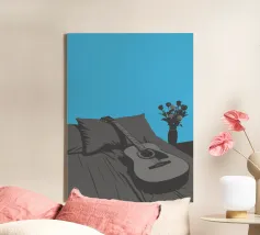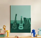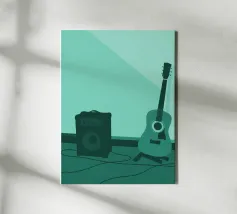 Uno stile artistico unico e accattivante. Due chitarre raffigurate in modo estremamente dettagliato,