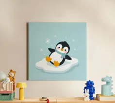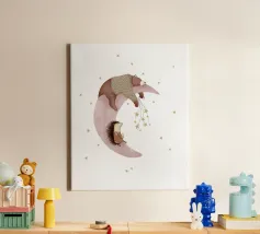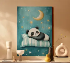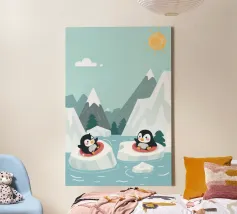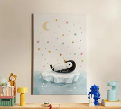 Due simpatici pinguini addormentati con elementi celestiali tela