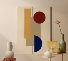 Scopri il fascino minimalista della stampa su canvas “Equilibrium” di Pure! Questo design contemporaneo offre un equilibrio ideale tra forme geometriche e colori vivaci, perfettamente adatto per decorare il soggiorno, la camera da letto o anche l'ufficio. Con le sue linee pulite e il mix di blu e tonalità calde, aggiunge un tocco di eleganza e stile a qualsiasi ambiente. È il pezzo perfetto per chi ama l'arte moderna e cerca di esprimere la propria personalità attraverso la decorazione interni. Non perdere l'opportunità di trasformare le tue pareti con questo capolavoro unico!