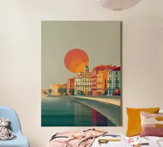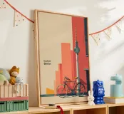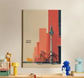 "Explore Berlin" cattura lo spirito della città attraverso una vibrante composizione retrò. Caratterizzata dall'iconica Fernsehturm (Torre della televisione), da una bicicletta d'epoca e da audaci blocchi di colore architettonici, questa opera d'arte è perfetta per gli amanti di Berlino, del design urbano e degli interni ispirati ai viaggi.