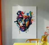 Vivid abstract illustration of a human face rendered with bold brushstrokes and vibrant splashes of red, blue, yellow, and black. Expressive details evoke emotion and creativity, blending modern art and realism.