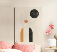 Questa composizione cattura il delicato equilibrio tra geometria e natura. Cerchi audaci e linee verticali si innalzano con forza architettonica, mentre le foglie autunnali scivolano delicatamente alla base, aggiungendo calore e fragilità. L'interazione tra la struttura nitida e la morbidezza organica evoca una tranquilla riflessione sul cambiamento, la stabilità e il passare del tempo. È un'opera moderna e senza tempo, astratta ma profondamente radicata nel ritmo familiare dell'autunno.