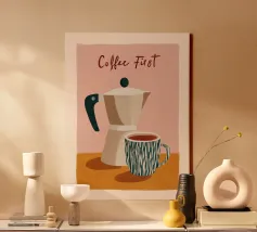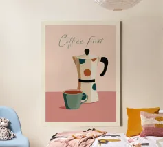Aggiungi un tocco di stile al tuo spazio con la nostra stampa su tela "Prima il Caffè". Perfetta per la cucina o la sala da pranzo, quest'opera d'arte evoca il calore e l'accoglienza delle mattine all'italiana. Realizzata con materiali di alta qualità, questa stampa rende omaggio al caffè, perfetta per gli amanti del caffè e per chi desidera decorare la propria casa con un tocco unico e moderno.