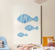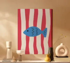 Porta un tocco di freschezza e originalità al tuo ambiente con il canvas "Fishtime". Questo design unico di Tabea Jule è perfetto per stanze di bambini, asili o luoghi di relax, creando un'atmosfera accogliente e vivace.