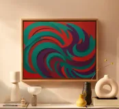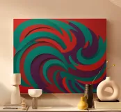Un audace motivo astratto con un tocco di energia dinamica che simboleggia il movimento e la fluidità. Colori vivaci che evocano temi come l'acqua, la vita e il movimento. Una fusione innovativa di tradizione e modernità per interni contemporanei e minimalisti. Un linguaggio visivo unico che supera i confini culturali.