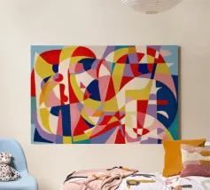 Un motif abstrait audacieux avec une touche d'énergie dynamique qui symbolise le mouvement et la fluidité. Des couleurs vives pour évoquer des thèmes tels que l’eau, la vie, et le mouvement. Une fusion innovante entre tradition et modernité pour des intérieurs contemporains et minimalistes. un langage visuel unique qui transcende les frontières culturelles.