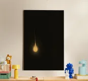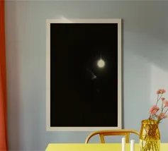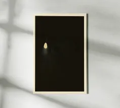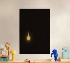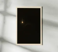 Da un vuoto più denso della mezzanotte emerge una singola esca gialla, la cui calda goccia di luce fa vorticare il plancton in orbite ipnotiche. Solo le più deboli nervature di una rana pescatrice in agguato si registrano sul bordo della tela, ricordandoci che ogni promessa di luminosità porta con sé un intento nascosto. La texture granulosa riproduce il modo in cui la materia particolata disperde i fotoni sott'acqua, mentre il nero circostante assorbe il pensiero e lo sguardo. È un momento di tensione tra curiosità e cautela, catturato in una scintilla tremante e senza tempo.