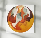 Flow of Things Abstract Circular Print – Warm Earth Tone Mid-Century Art mid-century modern stained glass and natural topographical patterns, the composition is unified by crisp white outlines that create a layered, three-dimensional effect. This high-contrast contemporary wall art is perfect for a minimalist living room, a serene bedroom, or as a focal point in a modern entryway. Its circular form offers a to any curated gallery wall.Circular Abstract Art, Flow of Things, Earth Tone Wall Decor, Mid-Century Modern Geometric, Organic Shapes Art, Warm Palette Abstract, Contemporary Living Room