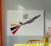 Scopri il poster 'Fly' di Cassia Beck Collage, un'opera d'arte che celebra la bellezza del viaggio aereo, perfetta per decorare il tuo spazio e ispirare la tua passione per l'aviazione.