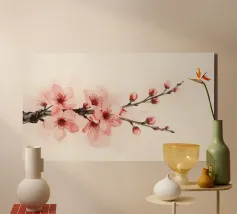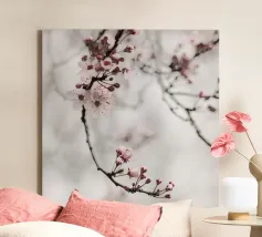 Dieses zarte Kirschblütenmotiv fängt die poetische Schönheit des Frühlings auf eindrucksvolle Weise ein. Die sanftrosa Blüten heben sich harmonisch von einem warmen, weichen Hintergrund ab und vermitteln eine ruhige, beruhigende Atmosphäre. Diese Fotografie eignet sich perfekt, um Räumen eine entspannte und romantische Note zu verleihen. Ob im Wohnzimmer, Schlafzimmer oder im Büro – das Wandbild schafft eine Oase der Ruhe und verleiht Ihrem Zuhause einen Hauch von natürlicher Eleganz und Stil. Ideal für alle, die das Gefühl eines blühenden Frühlings mit zeitloser Ästhetik genießen möchten.