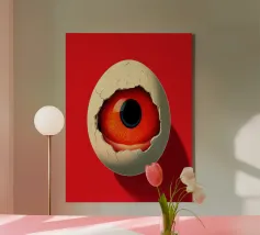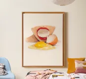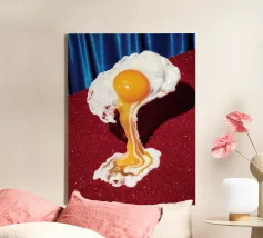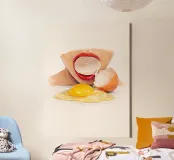This artwork is taken from a video performance I created, exploring freshness, sensuality and everyday objects in a playful, minimalist way. The soft watercolor style and clean composition focus on a pair of red lips interacting with an egg, transforming a simple scene into a bold and intriguing visual statement. Perfect for modern kitchens, creative studios, and contemporary interiors. fresh minimal watercolor poster egg art lips pop art contemporary kitchen art surreal conceptual sensual bold colors modern wall art food art