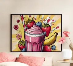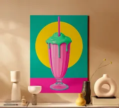 Frullato fresco di fragola e menta servito in un bicchiere classico tela