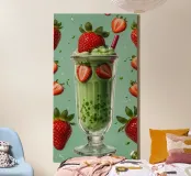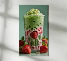 Un rinfrescante frullato verde menta con fragole fresche, servito in un elegante bicchiere, che crea una deliziosa e vivace delizia estiva.