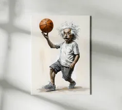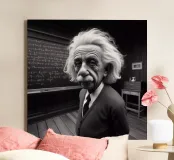 Albert Einstein davanti ai suoi appunti di genio. Una caricatura della straordinaria mente scientifica.