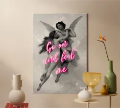 Abbracciate un fascino malizioso con "Go On and Fool Me", un'accattivante stampa pop art che fonde abilmente la ritrattistica classica con una sfida giocosa e contemporanea. Questa intrigante opera d'arte presenta un bellissimo personaggio storico, ornato da delicati fiori e da una sottile bolla di sapone. L'audace testo rosa caldo "GO ON AND FOOL ME" sovrasta l'immagine, aggiungendo una dichiarazione spiritosa e un po' provocatoria. È una fusione perfetta di eleganza senza tempo e umorismo moderno, ideale per aggiungere personalità e un tocco di spensieratezza a qualsiasi interno moderno. Realizzato ad un'eccezionale risoluzione di 7000x5000 pixel