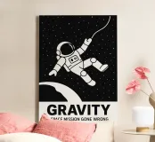 Stampa di Gravity, Poster cinematografico alternativo, Bianco e nero, Minimalista, Astronauta, Navetta spaziale, Passeggiata spaziale, Lost in Space, Cinema, Film, Regalo